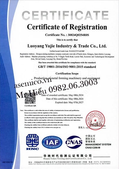 Công ty Đông Nam Á là đại diện bán hàng ủy quyền của Luoyang Yujie tại Việt Nam!