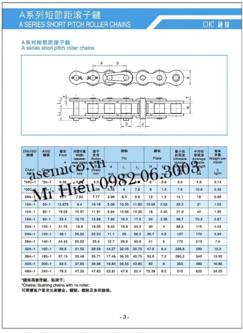 Xích con lăn bước đơn 1 dãyHộp 10FT / 5FT (tùy cỡ xích) có kèm 1 khóa xích