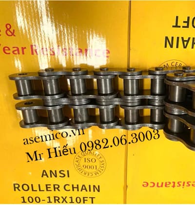 Xích con lăn bước đơn 2 dãyHộp 10FT / 5FT (tùy cỡ xích) có kèm 1 khóa xích