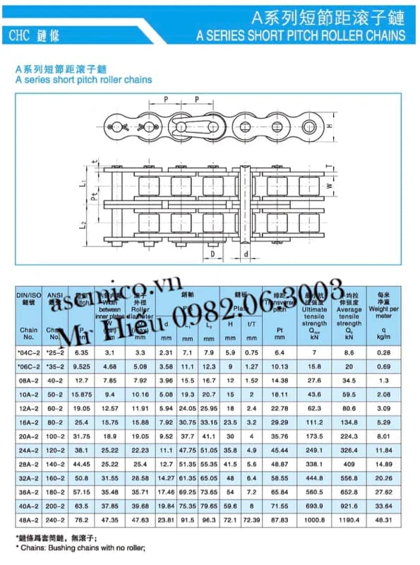 Xích bước đơn 2 dãy - CHC