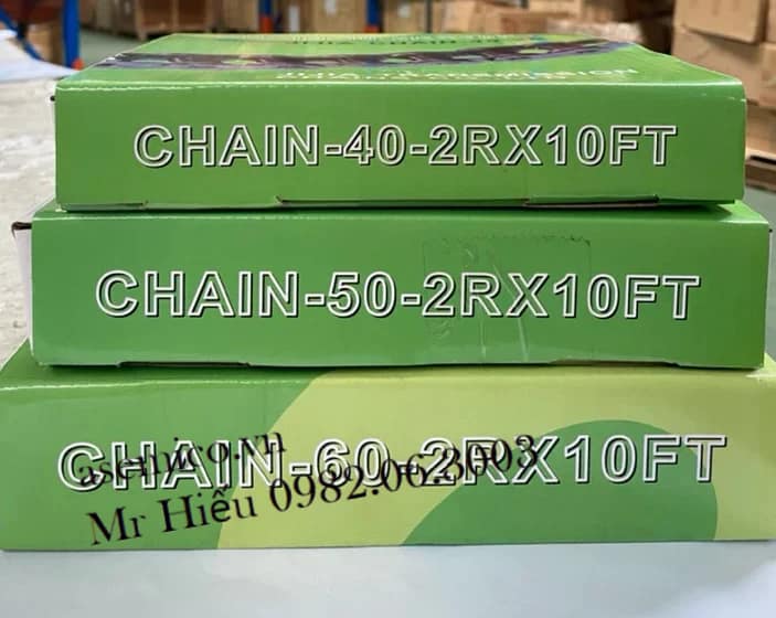 Xích con lăn bước đơn 2 dãyHộp 10FT / 5FT (tùy cỡ xích) có kèm 1 khóa xích